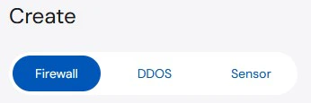 The Actions displayed are dependent on the service(s) the user has. A user can navigate between Services at the top of the page, where Firewall is highlighted below.