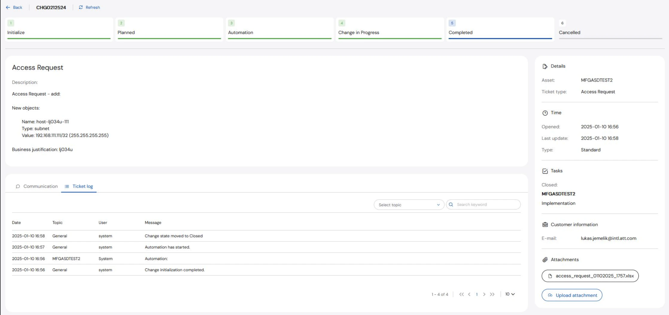 - Completed: This stage is the last stage. It means the automation is complete, or the ticket has been closed by the Operations team.