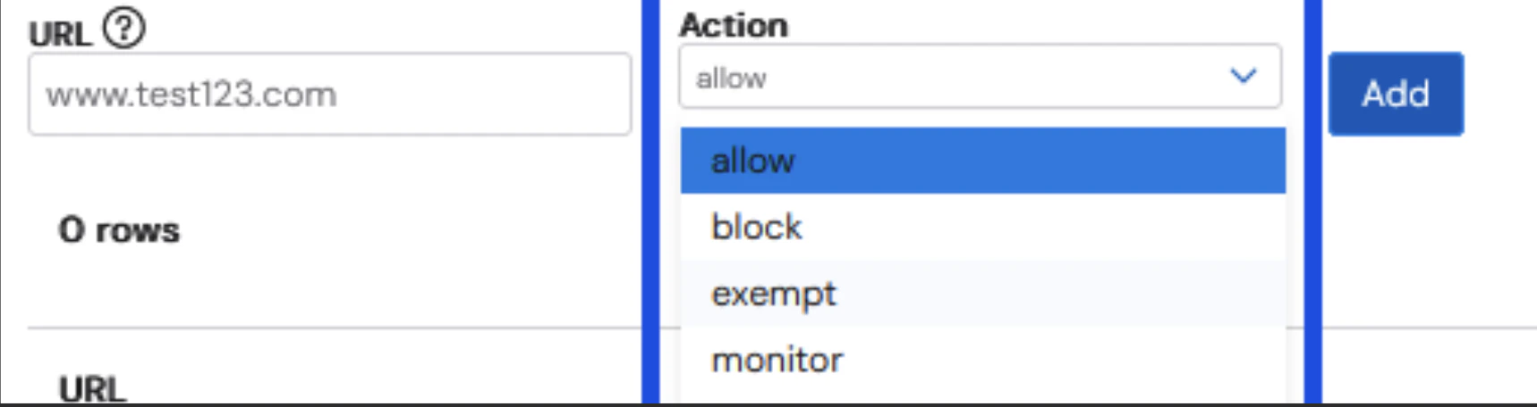 Select the Action and click the Add button. Multiple URLs can be processed at once. The URL list will grow as URLs are added.