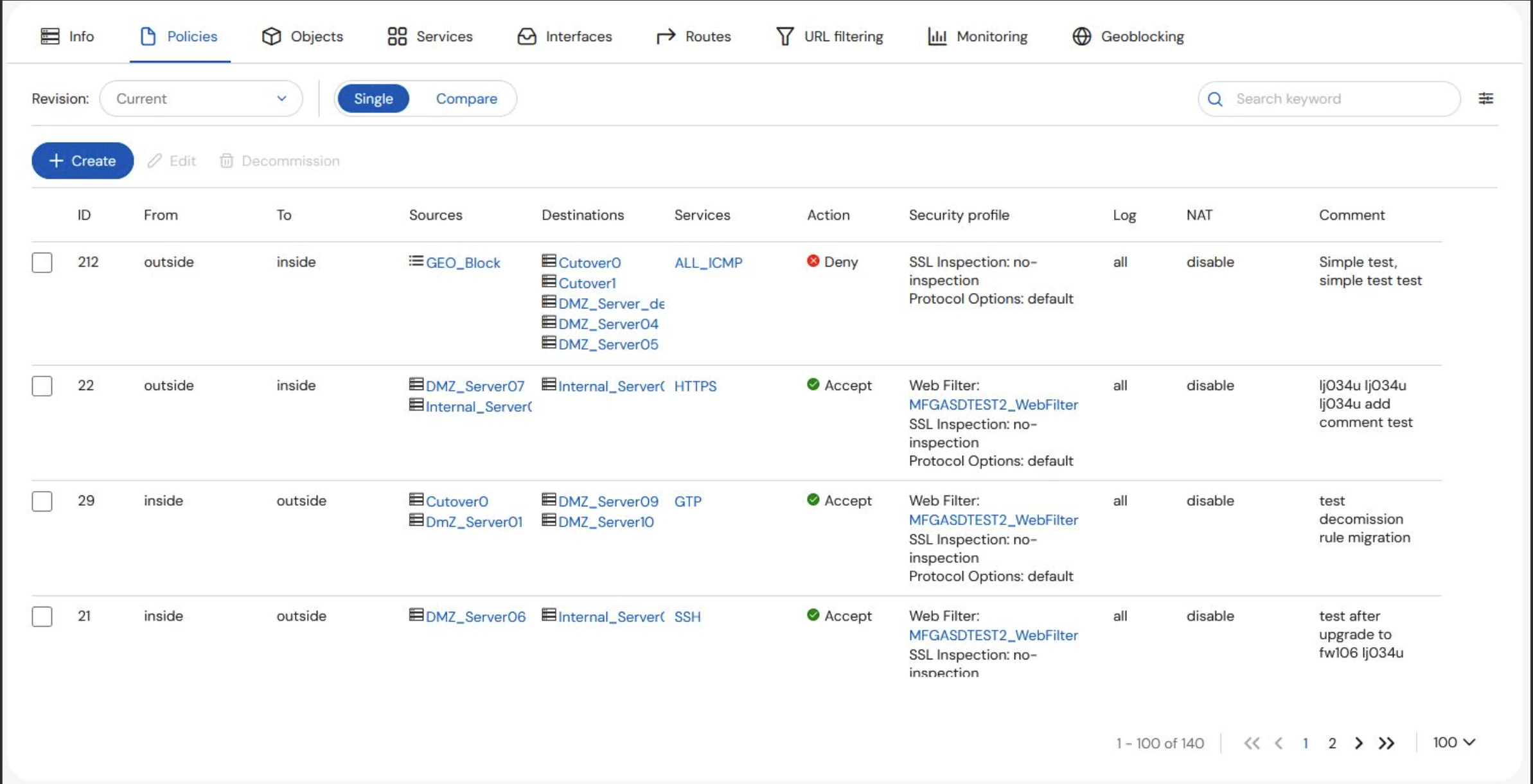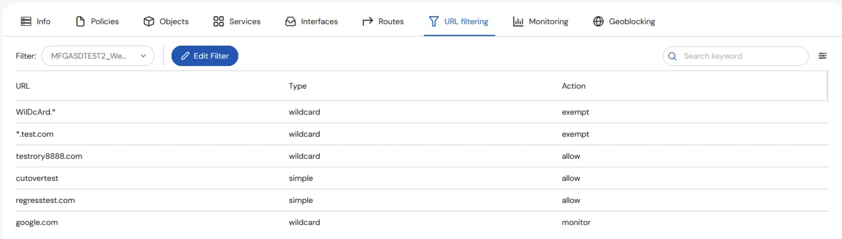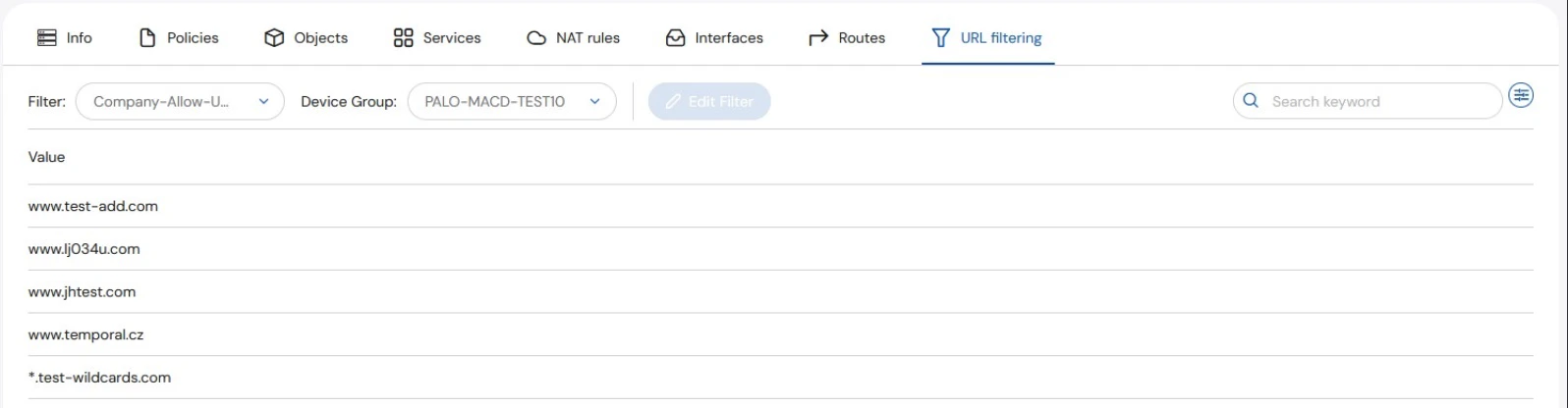 Viewing URL filters associated with specific assets is vendor specific. Fortinet, Palo Alto, and Checkpoint filtering are covered separately below.Fortinet Filtering