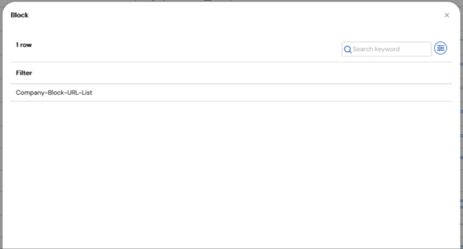 To view URL filters on a specific asset, go to Manage, then the Policiestab. URL filters appear in the Custom Filters column of the Policies table. They are categorized into alert, allow, and block. Clicking a link displays the URLs listed for the associated action.