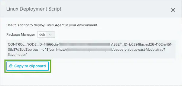 - Select the Package Manager type for the Linux distribution. The deb type is selected by default. If the asset uses a Red Hat distribution, select the rpm type.