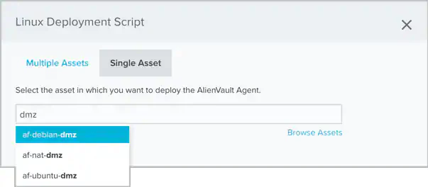 Note: If you use a multiple asset installation script to execute bulk deployment across multiple host systems, the script will not have the unique asset ID. In this case, USM Anywhere attempts to associate the LevelBlue Agent with an existing asset if there is enough information and it can make a definitive match. When a deployed agent does not have an associated asset, you must manually make this association in USM Anywhere to enable queries and log collection for the host system. See LevelBlue Agent and Asset Associations for more information.