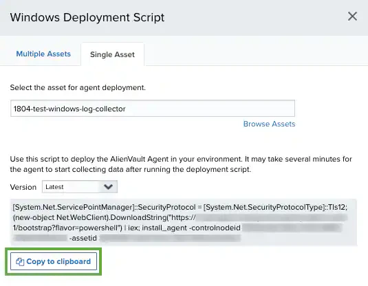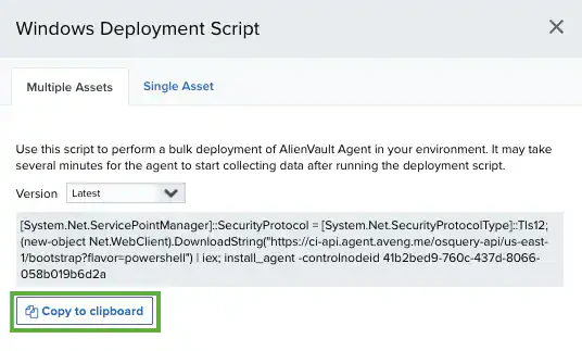 Note: If you use a multiple asset installation script to execute bulk deployment across multiple host systems, the script will not have the unique asset ID. In this case, USM Anywhere attempts to associate the LevelBlue Agent with an existing asset if there is enough information and it can make a definitive match. When a deployed agent does not have an associated asset, you must manually make this association in USM Anywhere to enable queries and log collection for the host system. See LevelBlue Agent and Asset Associations for more information.