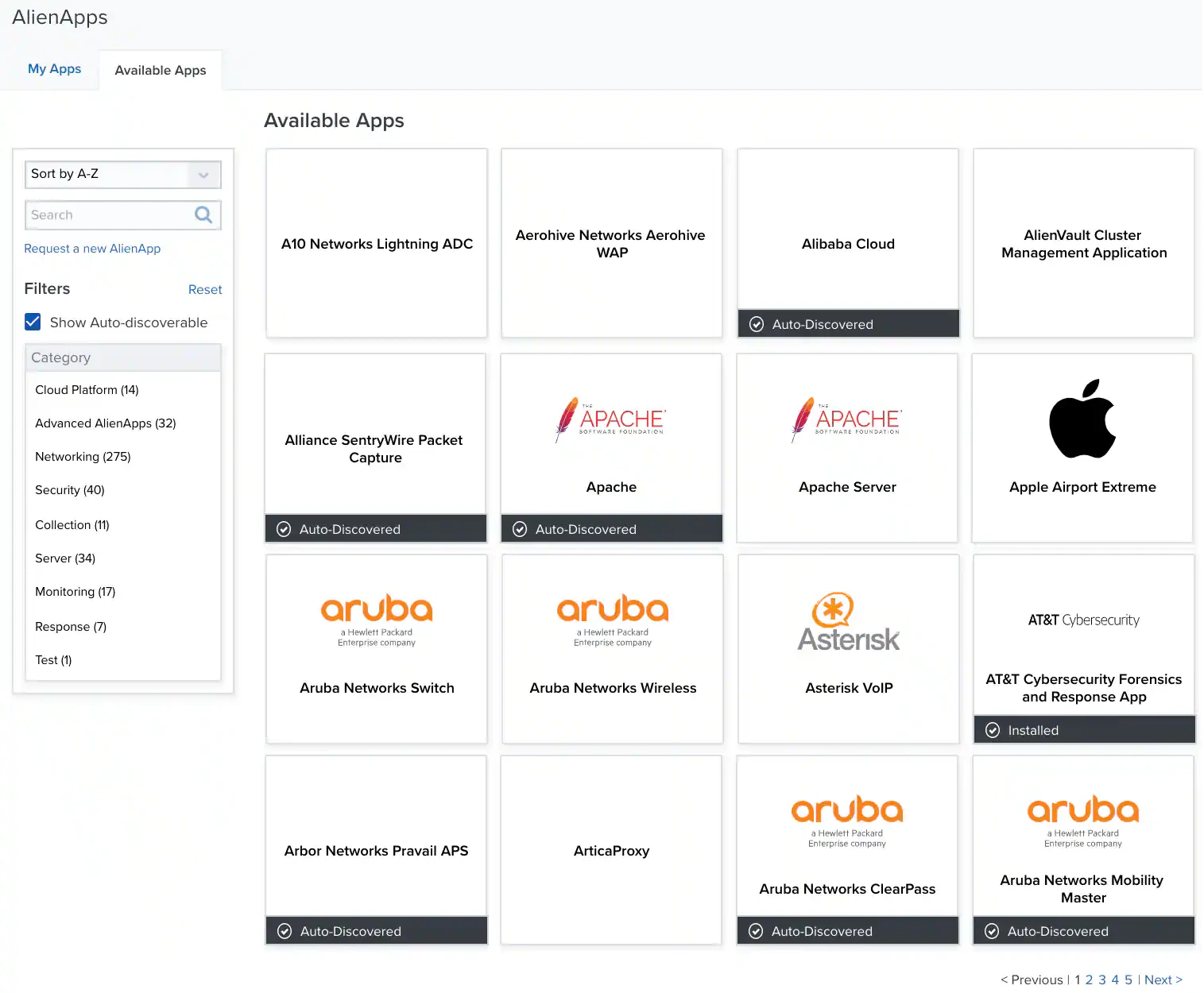 The Available Apps tab lists all the apps you can configure in your environment.