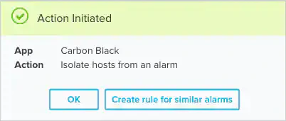 Isolate Hosts from Alarm | Run this action directly from an alarm to send a request to Carbon Black EDR to isolate the associated endpoint(s) |