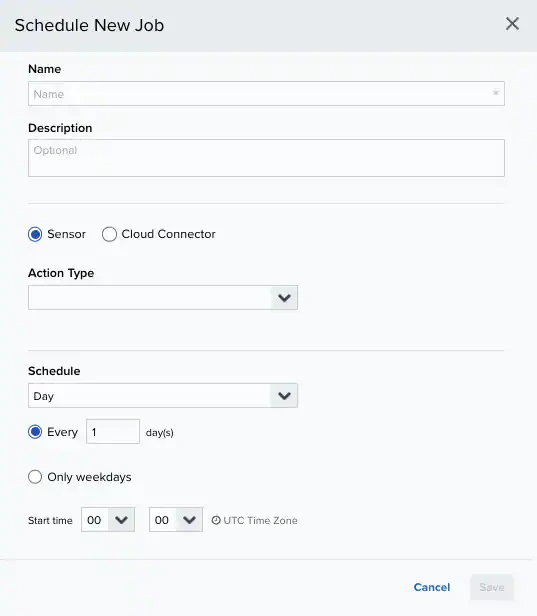 - If you have more than one deployed USM Anywhere Sensor, select the Sensor on which the job should run.