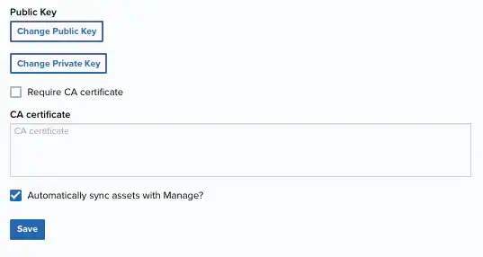 - (Optional) If you want to use your own certificate for connection to your ConnectWise environment, select the Require CA certificate checkbox and enter the certificate in the CA certificate field. The SSL certificate must be configured in ConnectWise. See the ConnectWise documentation for more information about ConnectWise SSL support and enablement (requires a ConnectWise University login).