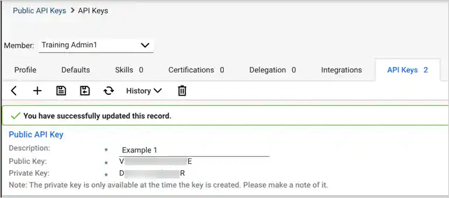 - Member: Enter the name for the member account that you used to generate the API keys.
