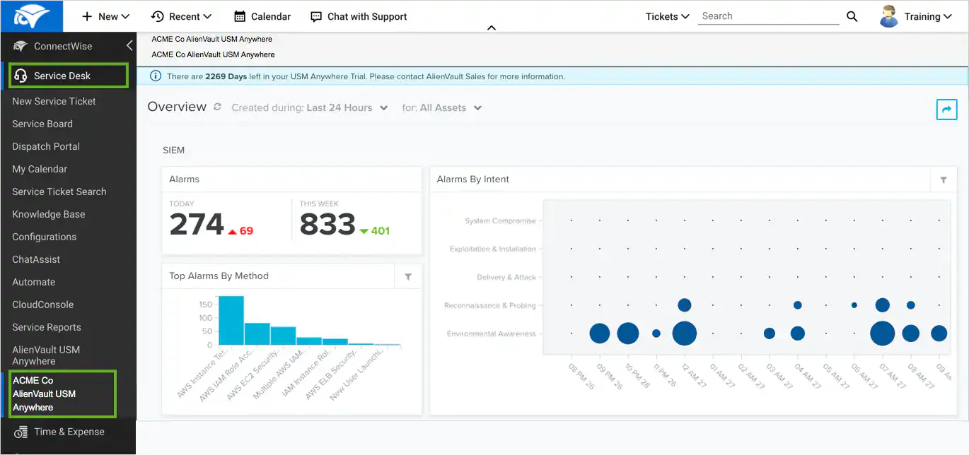 - In ConnectWise Manage, select Service Desk to expand the menu.