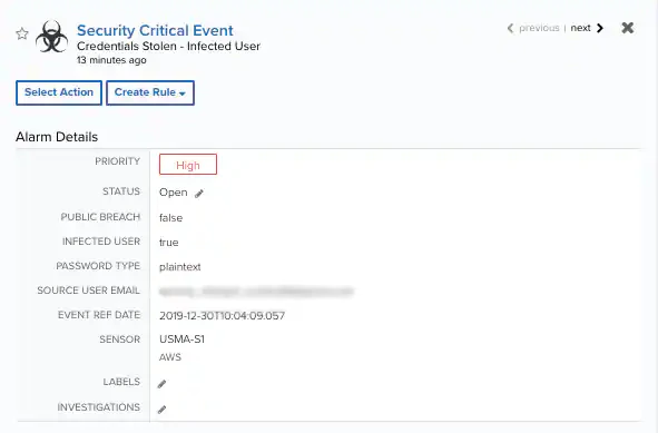 | Infected User | A true/false flag that indicates if the credentials were obtained by a keylogger. |