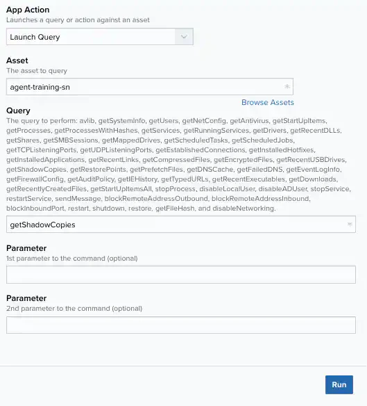 - Run an action from the BlueApp for LevelBlue Forensics and Response page
