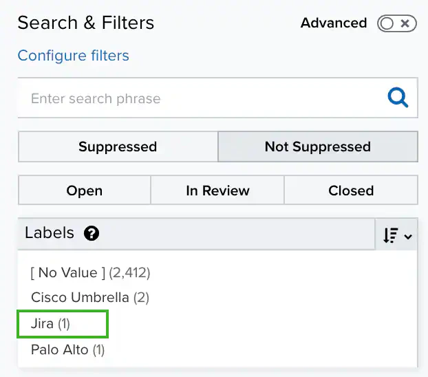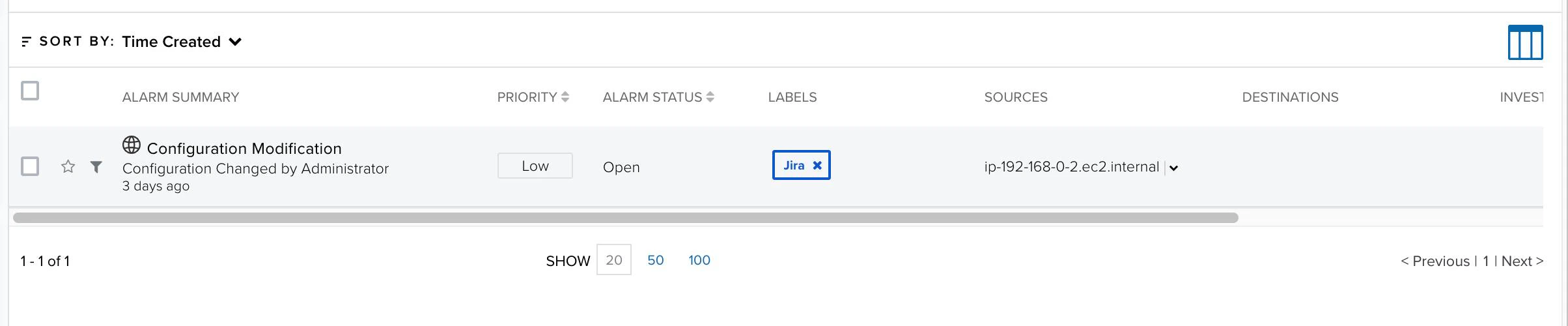 USM Anywhere uses labels as a mechanism to classify alarms and vulnerabilities. These labels make it easy to filter items by label so that you can locate them easily and track their status. When the BlueApp for Jira executes a response action for an alarm or vulnerability, it automatically applies the Jira label to it. You can use this label as a filter so that a page displays data for only those items related to an BlueApp for Jira response action. To view Jira action alarms or vulnerabilities- Open the Alarms page or Vulnerabilities page.