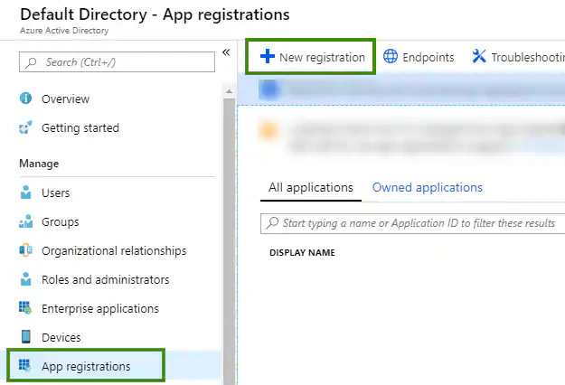 Go to App Registrations, and then click New Registration.