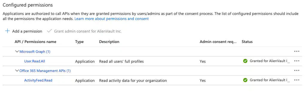 This integration requires connectivity between your USM Anywhere Sensor and the Microsoft APIs. If you have an Azure Sensor deployed in your Azure subscription, you should use this sensor to configure the BlueApp because you don’t need to configure additional permissions. If you use a non-Azure Sensor, you must set your firewall permissions based on the following table to allow inbound and outbound connections for the sensor. Firewall Permissions for the USM Anywhere Sensor| Type | Port | Endpoint | Purpose |