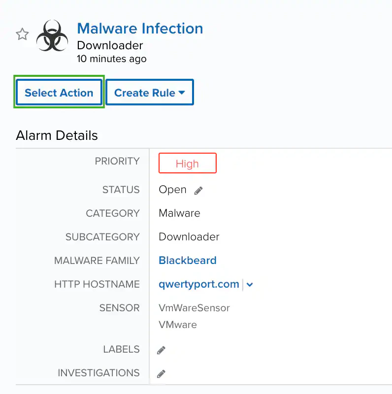 You can launch an action directly from alarms or events. If you want to apply an action to similar events that occur in the future, you can also create orchestration rules directly from the action applied to an alarm or event.All Group and Tag names will default to lowercase in USM Anywhere to avoid any potential confusion over letter casing.