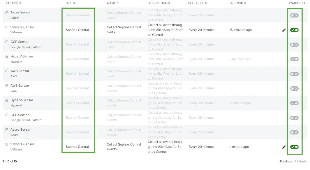 In the Filter by option at the top of the list, enter Sophos to filter the displayed list for the Sophos Central app jobs.