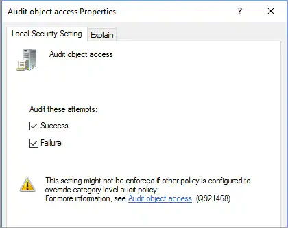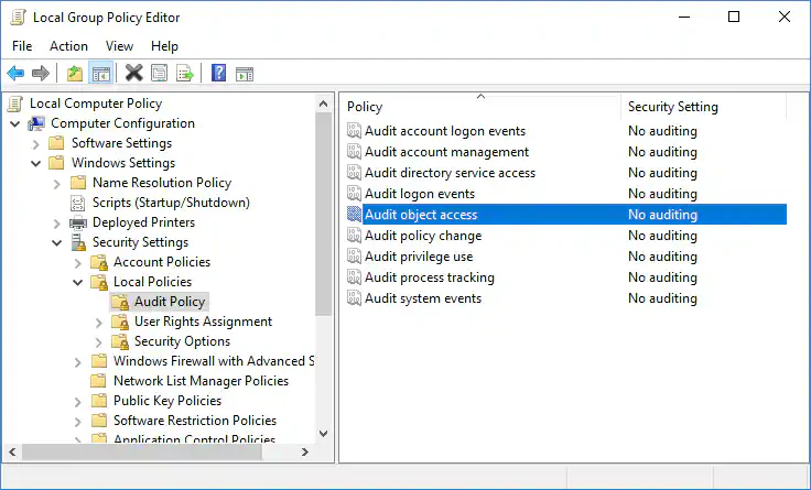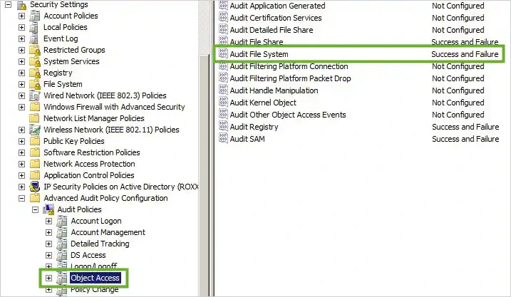 Configuring Policy Settings for Object Access Audit Events