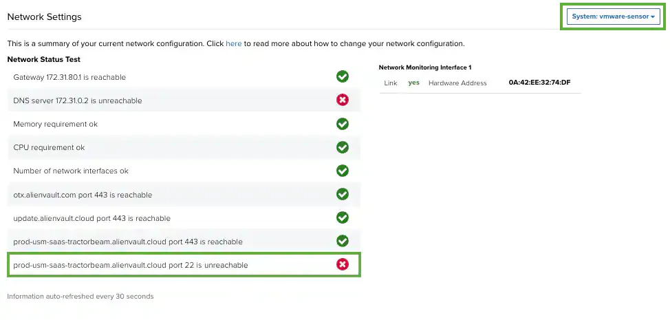 - While logged in to USM Anywhere, check your networking status by going to Settings > System.