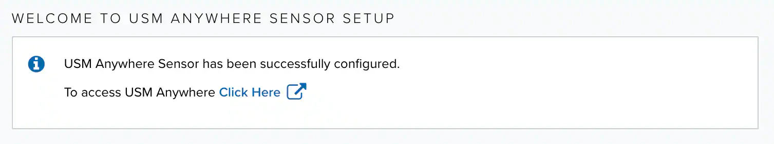 If you do not want to complete the sensor setup immediately, you can click Start Using USM Anywhere at the bottom of the page. However, you must complete the sensor setup before you can use it.
