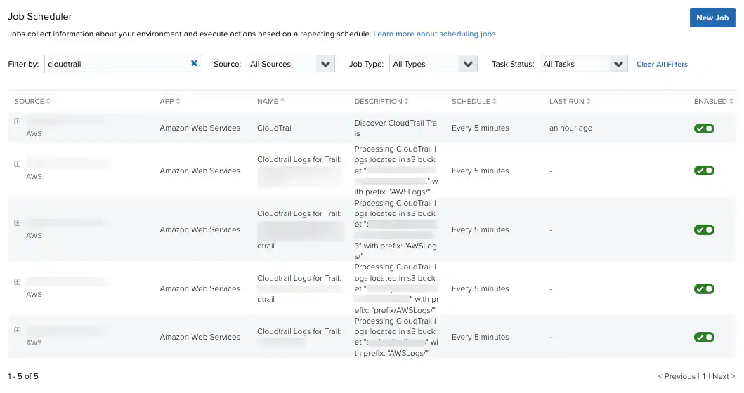 - Search for CloudTrail in the Job Scheduler Filter By field.