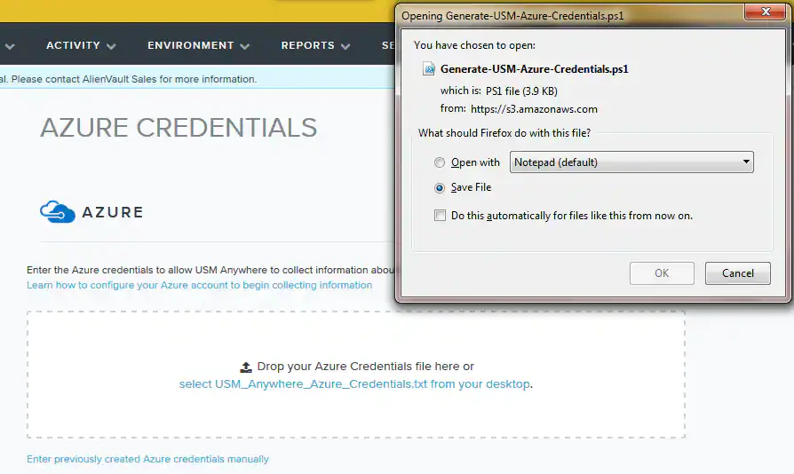 To generate Azure Credentials for Microsoft Windows usersThis procedure is for Windows users who want to use the provided Power Shell script to automatically generate their credentials for sensor configuration:
