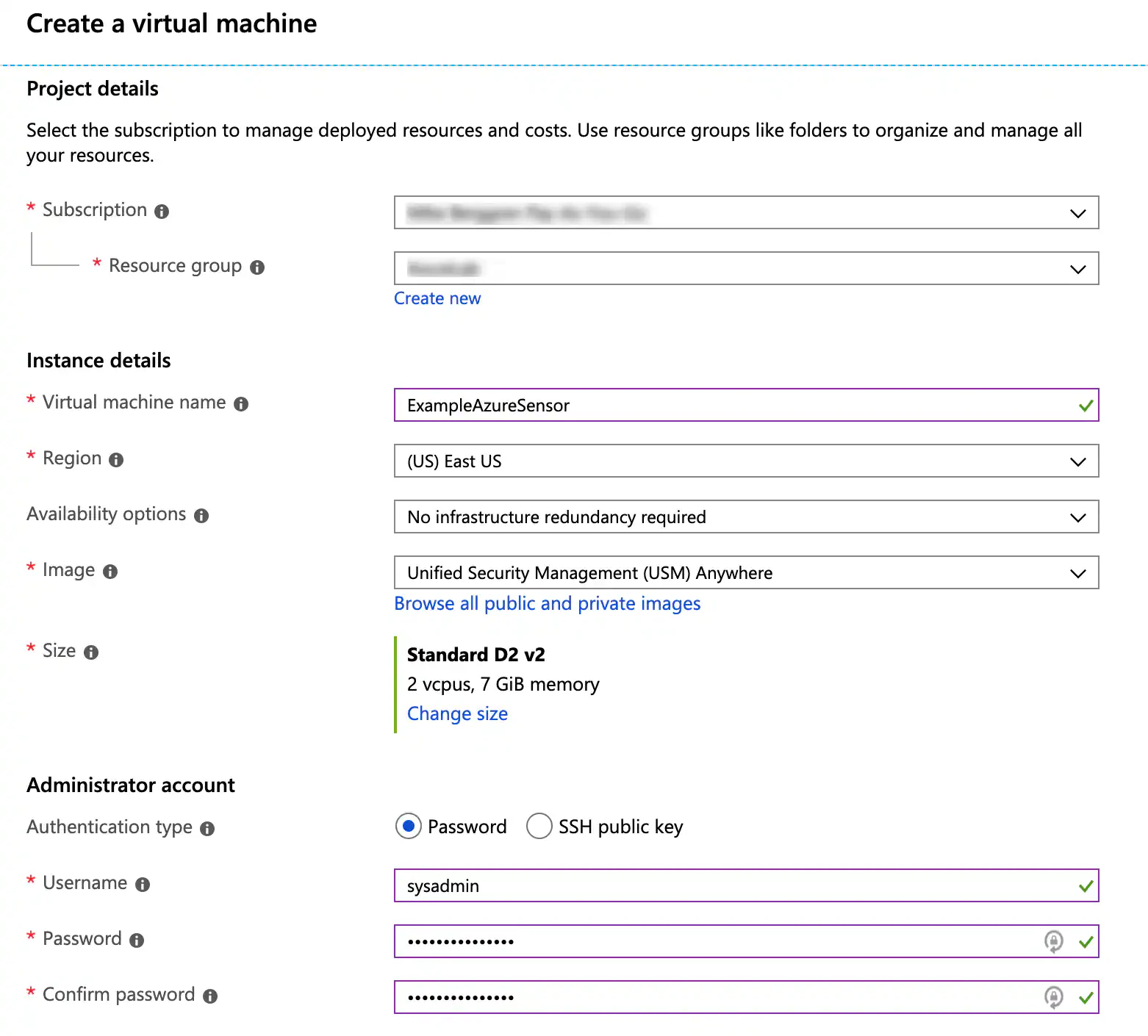 - Subscription: Select the subscription into which the USM Anywhere Sensor should be installed.