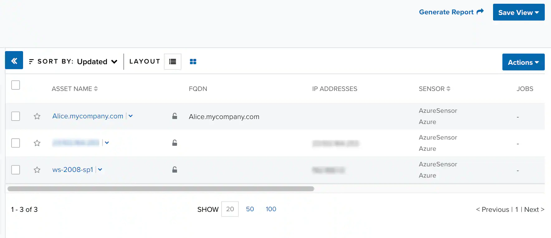 Note: It could take up to six minutes before events appear. Make sure to refresh your browser from time to time to display the current data.See Asset List View for more information about the Assets pages. See Events List View for more information about the Events pages.