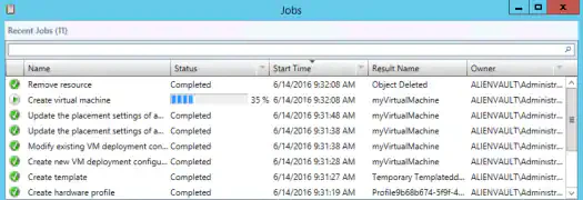 - Select the VM and select Action > Start. This process can take a few minutes. The status displays as Running when this is complete.