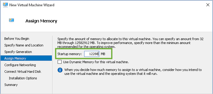In Assign Memory, change the value of the Startup memory to 12288 MB.