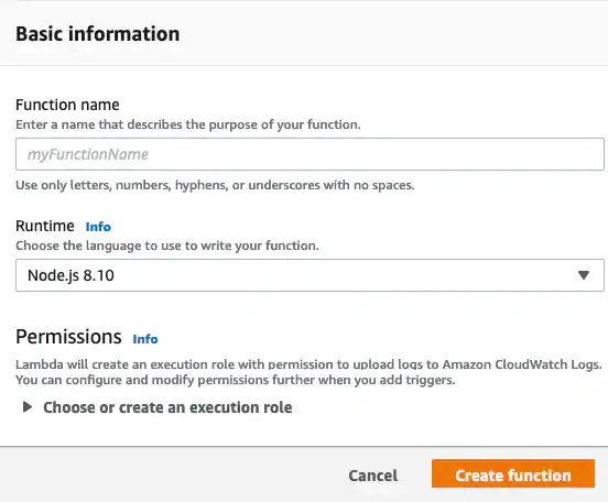 - Open the AWS Lambda page and click Create a function.
