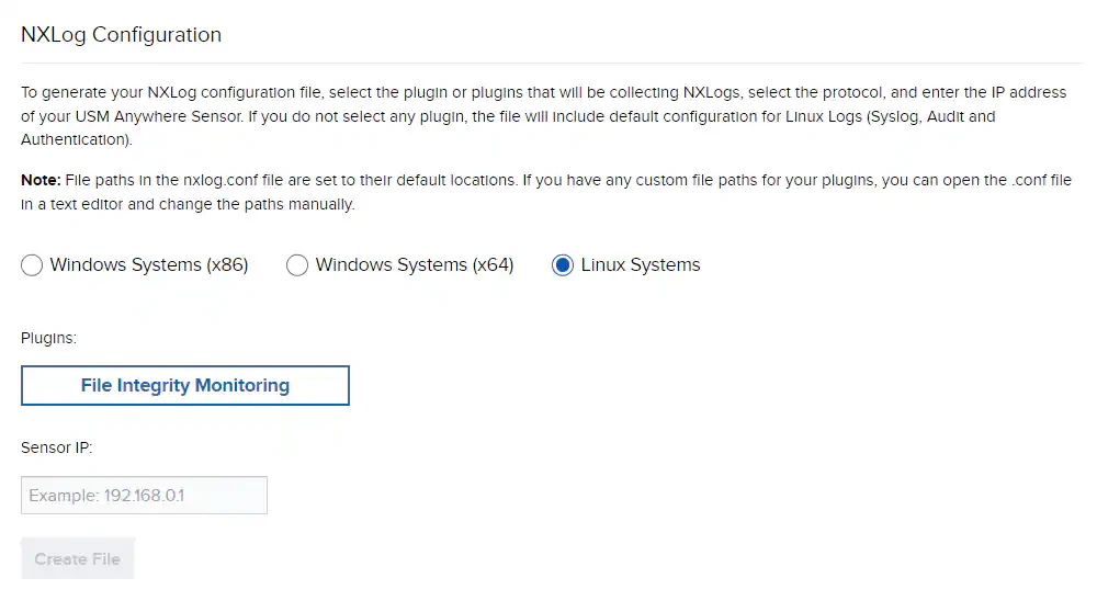 Click Create File to generate the new nxlog.conf file and save it to your NXLog installation directory.