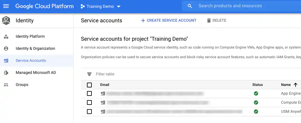 - Create a new service account. The sensor deploys with the created service account and then USM Anywhere grants permissions to other projects. See Create a New Service Account for more information.