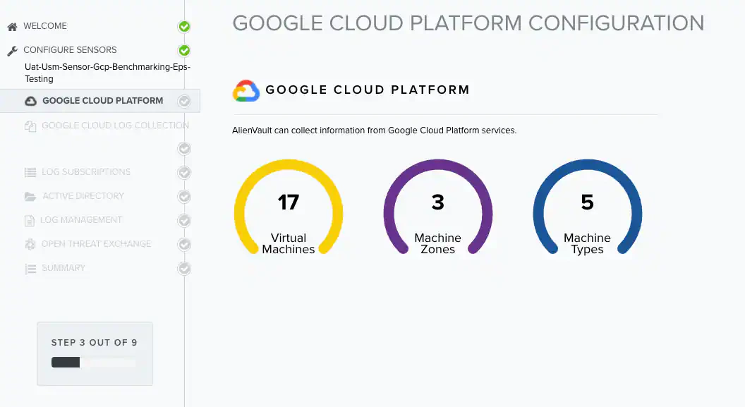 - Cloud Deployment Manager template provided by LevelBlue to create all required Google Cloud Platform (GCP) resources for deployment, including an instance, volume, and firewall rules for use by the USM Anywhere Sensor instance.
