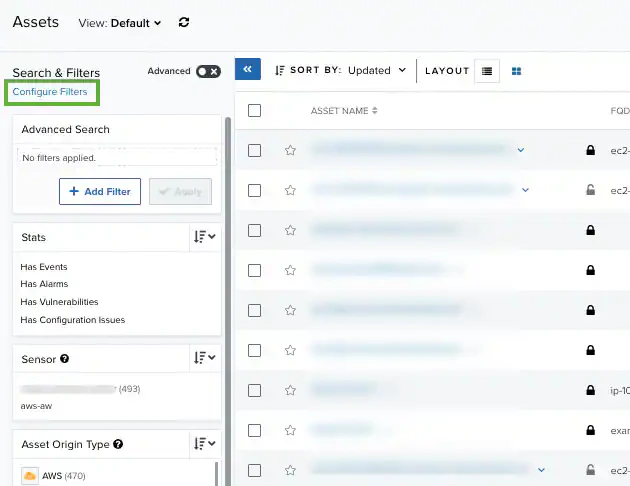 - From the Asset List view, select the filters you want to see.