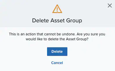 - Select Actions > Delete Asset Group to open a new window and confirm the deletion.