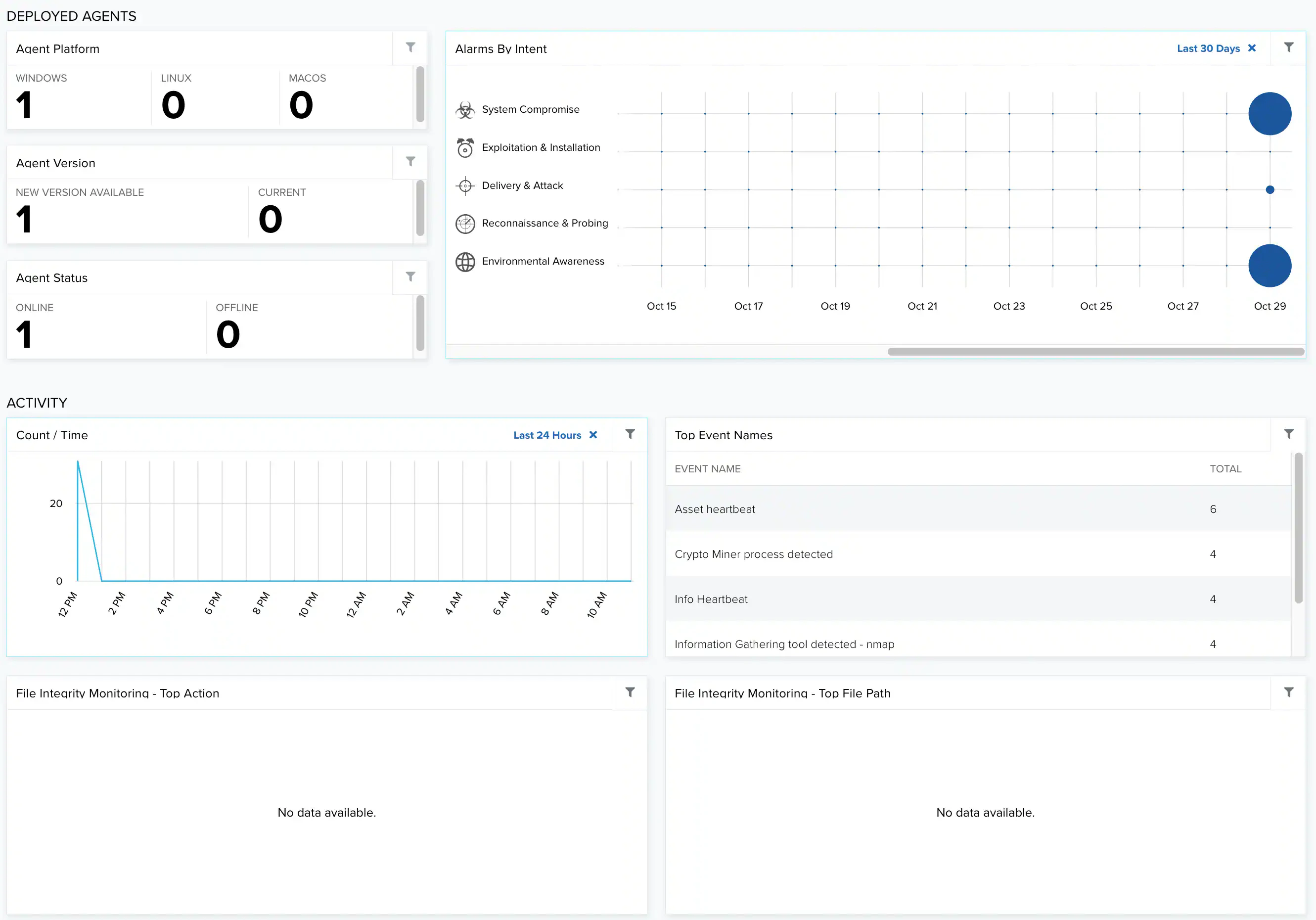 | Top Event Names | List of the top events related to the agent. |