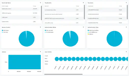 | Authentication Mode | Pie chart displaying, in percentages, the authentication mode for Amazon S3. |