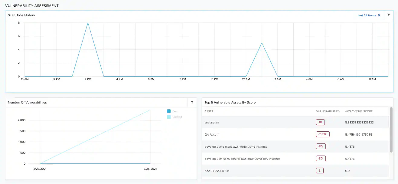 | Top 5 Vulnerable Assets by Score | List of the top five vulnerable assets ordered by score. |