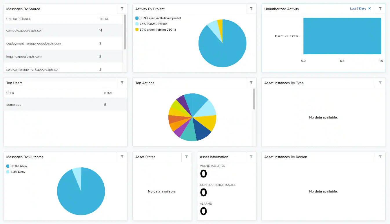 | Top Actions | Pie chart displaying the top actions in Google Cloud Platform. |