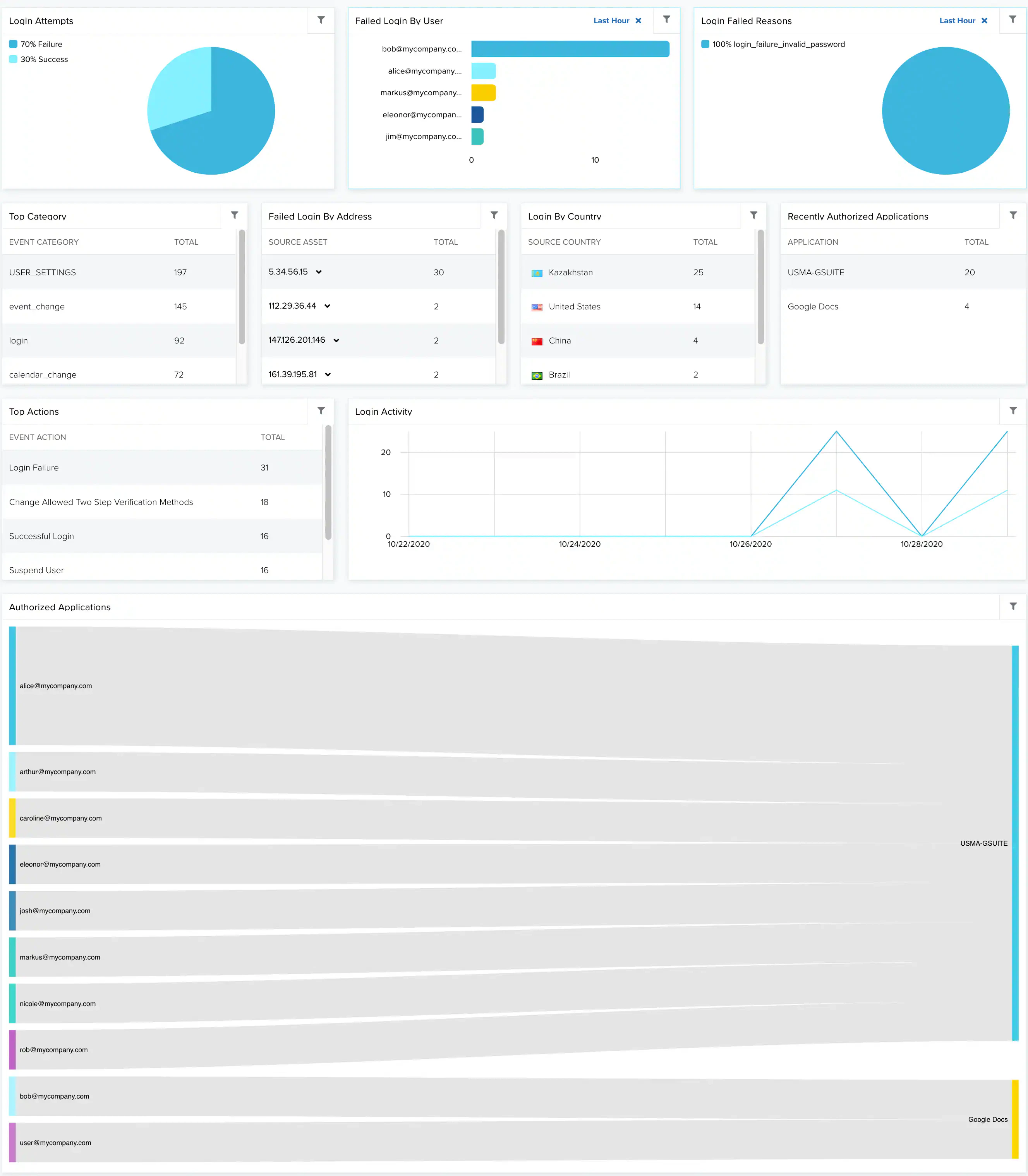 | Login By Country | List of the 5 login in G Suite Audit by country. |