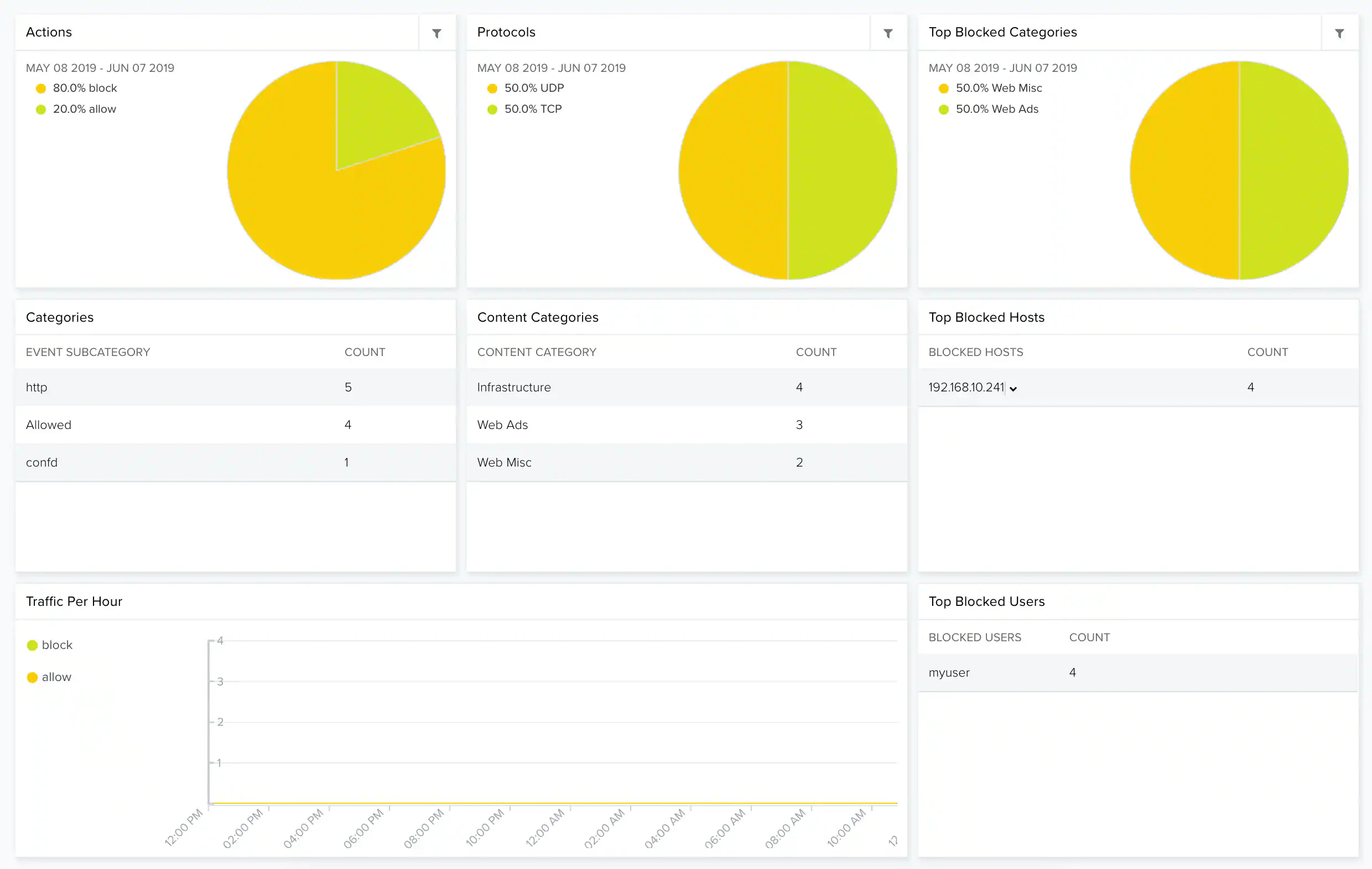 | Top Blocked Categories | Pie chart displaying, in percentages, the top blocked categories. |
