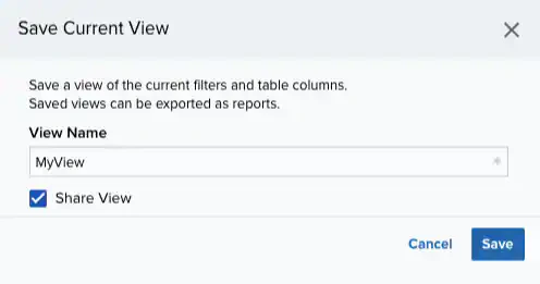 Note: Only users in the Analyst, Manager, or Investigator roles can create a view configuration.
