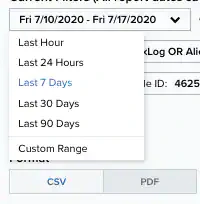 Choose Last Hour, Last 24 Hours, Last 7 Days, Last 30 Days, Last 90 Days, or Custom Range to set a particular date range.