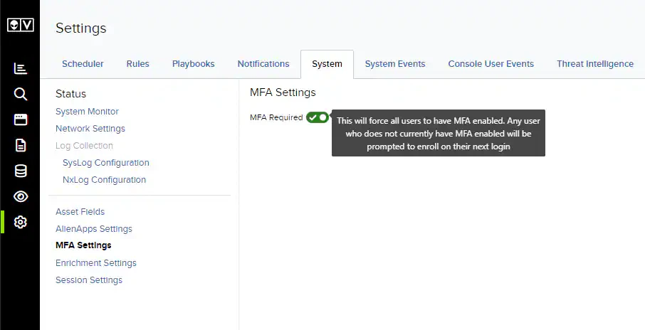- Go to Settings > System > MFA Settings.