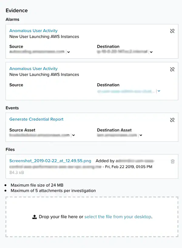 - There is a maximum number of five attachments per investigation.