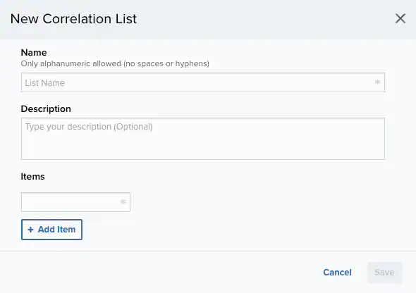 - Maximum of 100 user-generated correlation lists