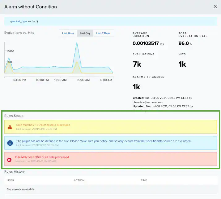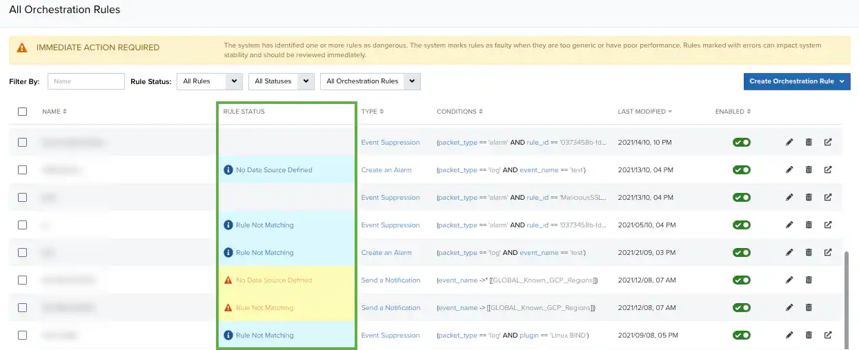 | WARNING | There are issues in this rule’s definition that might negatively impact your system. | |
