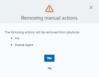 The Removing Manual Actions dialog box appears if there are any manual actions that cannot transform into automated actions. Any actions that cannot be transformed will be removed. Click Yes to continue.