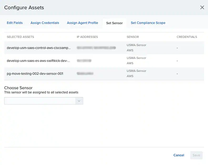 Select the sensor you want to assign to the selected assets.
